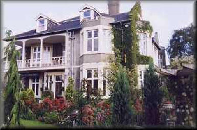 surrounded by attractive gardens, with trees, shrubs, conifers, rose